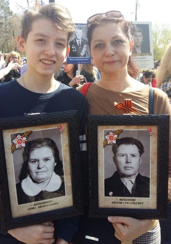 9 мая учащиеся МБОУ Гимназия №7 8 "В" класса прошли в "Бессмертном полку"
