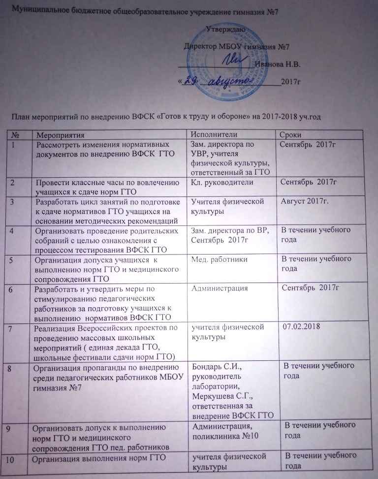 ФВСК ГТО в МБОУ гимназия №7 на 2017-2018 учебный год (615 КБ)